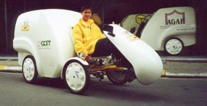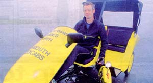 Bug Bugs - a capital investment The BugBugs pedicab operation has been a familiar sight around the streets of Londons popular Soho district for the past two years. BugBugs founder Chris Smallwood decided to establish the capitals first pedicab service and took a 3 month sabbatical from his successful component supply company to set up the project. Drawing on his considerable management experience Chris set a new industry standard for running a successful pedicab operation; extensive driver training, stringent safety rules, rigid maintenance schedules and an ethical approach to business set BugBugs apart from other pedicab operations that we have seen over the years. Chris has contributed much of his wisdom in the section titled “starting a pedicab business”, which I strongly advise potential operators to read. Running a pedicab business can be a very rewarding business, both financially and spiritually, but there are many pitfalls. BugBugs have set the benchmark for professionalism in this industry, read and benefit fromChris`s advice, with Bugbugs as a role model you won`t go far wrong. Plymouth Pedicabs - one man tour operator Andy Roberts decided last year that he had had enough of working 9-5 and decided to something about it. Looking around his home town of Plymouth Andy felt that a pedicab service would be just the thing. After contacting the factory I suggested that Andy contact BugBugs to get a taste of what operating pedicabs was all about. Andy returned from London inspired by what he had seen and placed an order for his Taxi in December `99. We delivered in time for the Spring launch of his business and Plymouth Pedicabs has been busy ever since. A brisk trade ferrying passengers on a sightseeing tour of Plymouth Ho! has encouraged Andy to consider expanding his fleet. We wish him the best of luck with his venture and hope to be able to support Plymouth Pedicabs for many years to come. <Go Back |